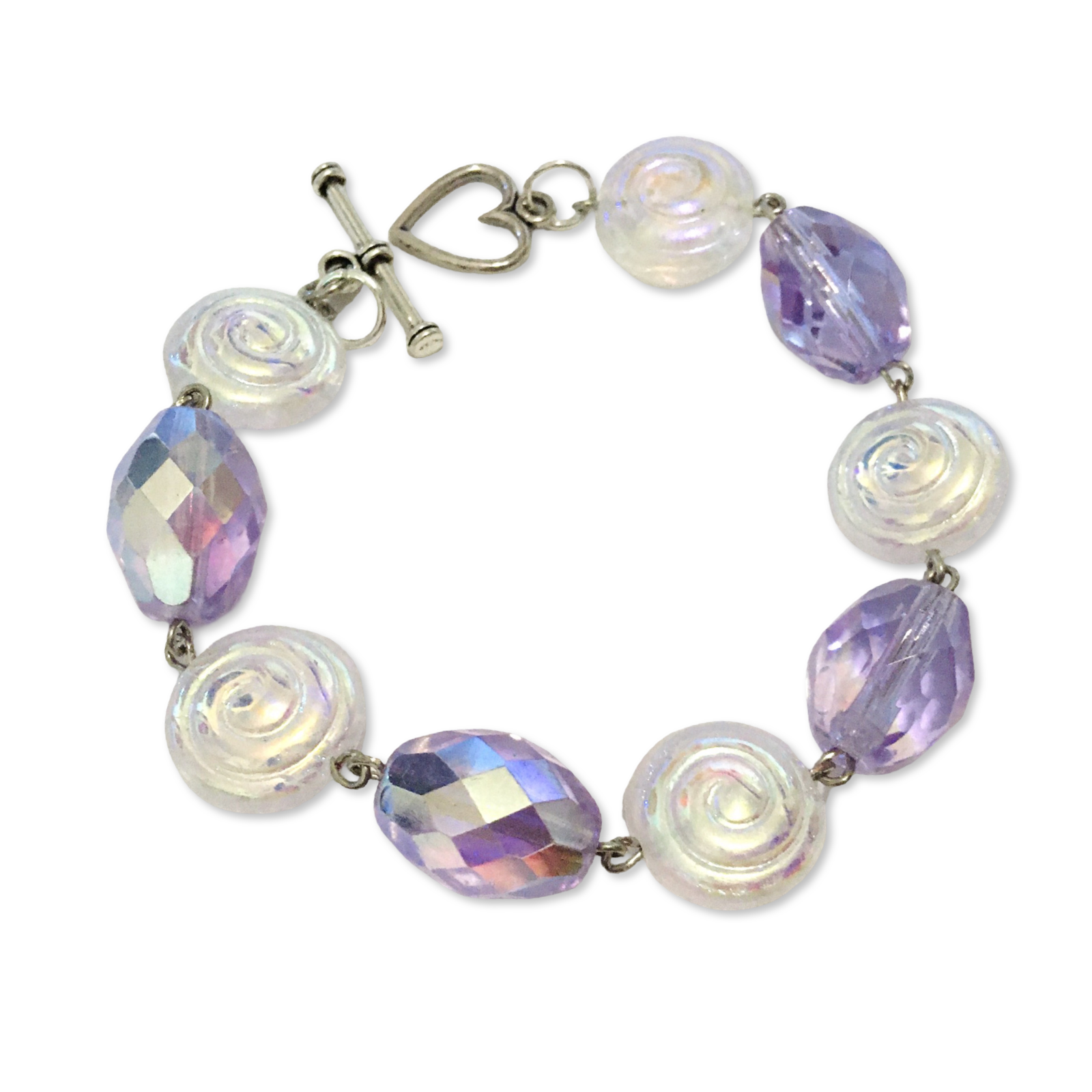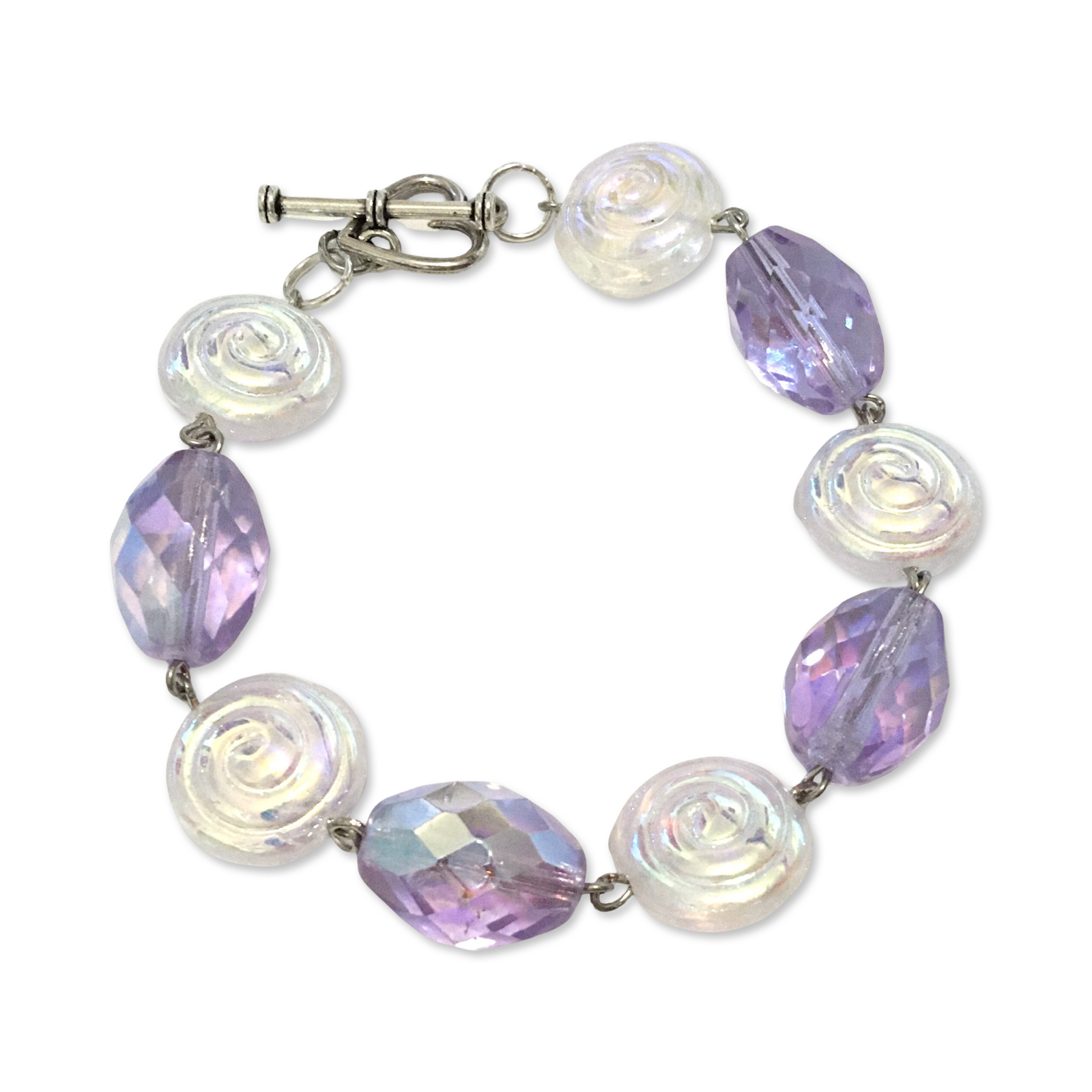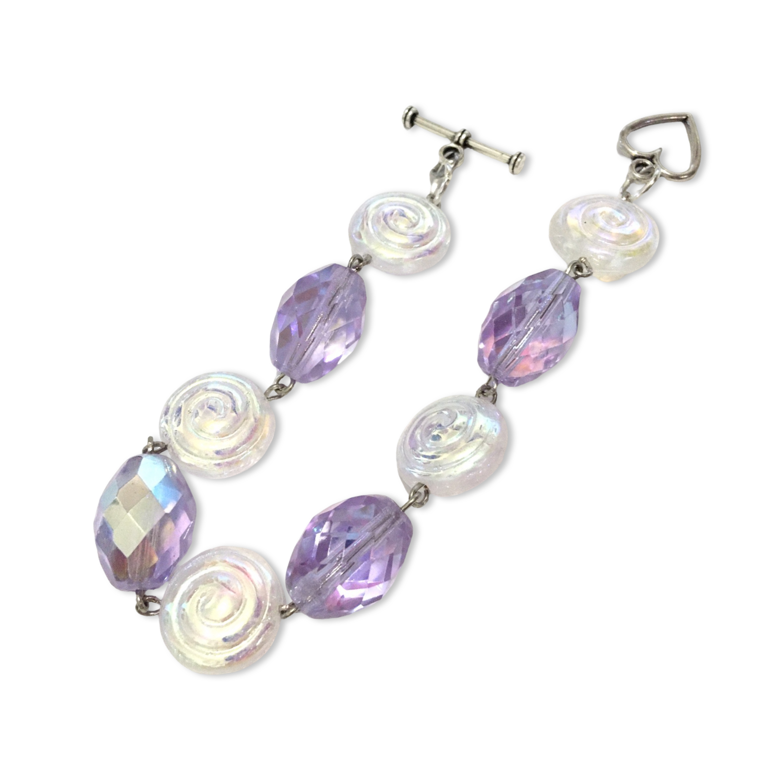 A prismatic handmade bracelet featuring Czech glass spirals and fire-polished beads in lavender.