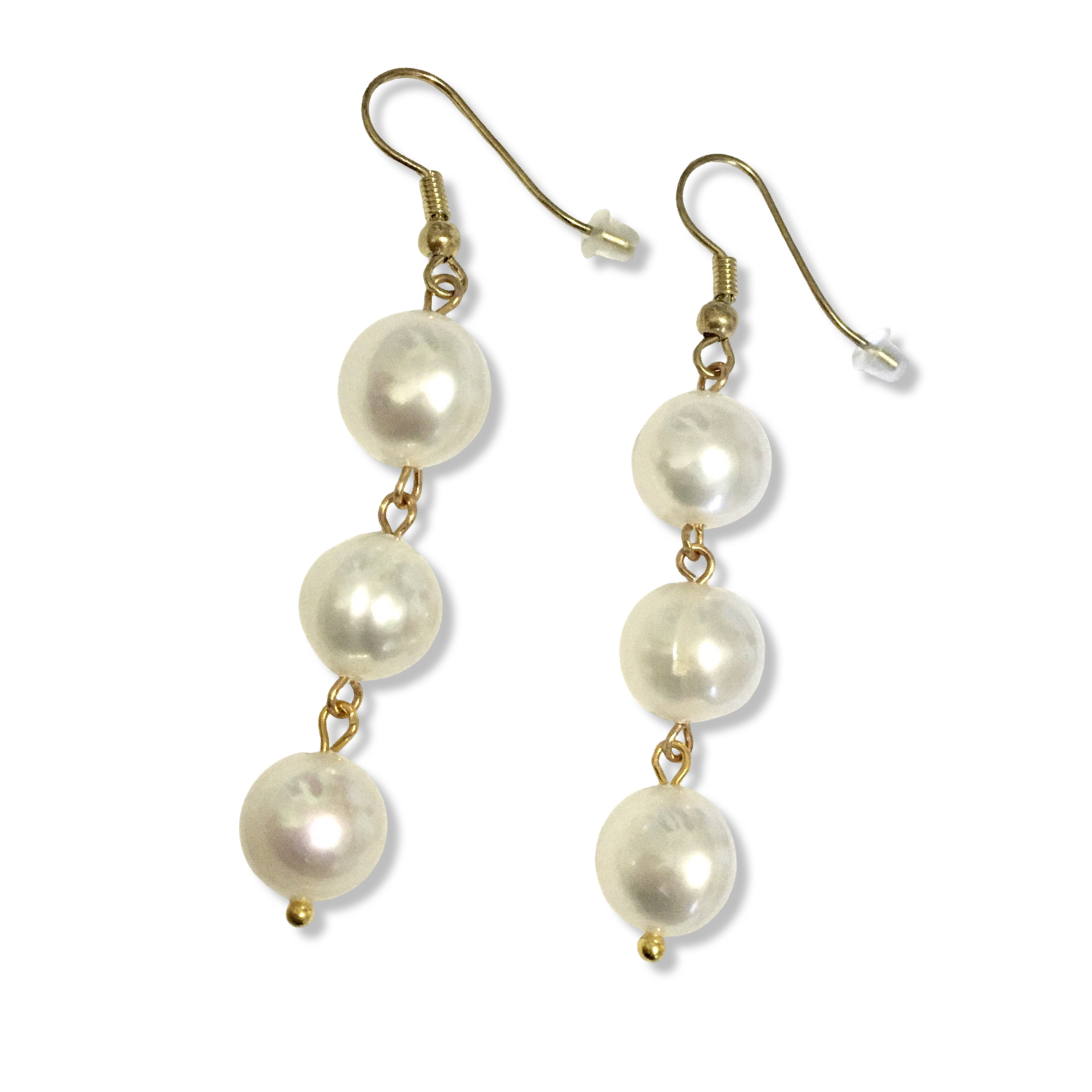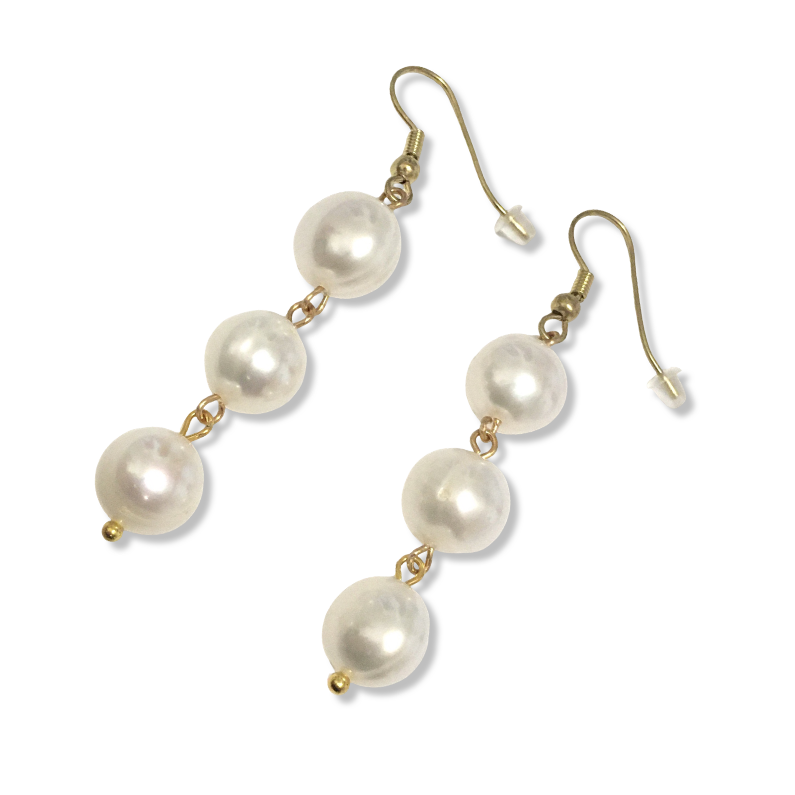 A simple and elegant pair of earrings made with six large freshwater pearls